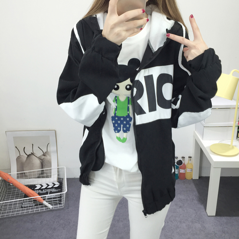 原宿學院風寬松bf短款連帽秋季長袖外套女裝春秋天韓版潮學生百搭