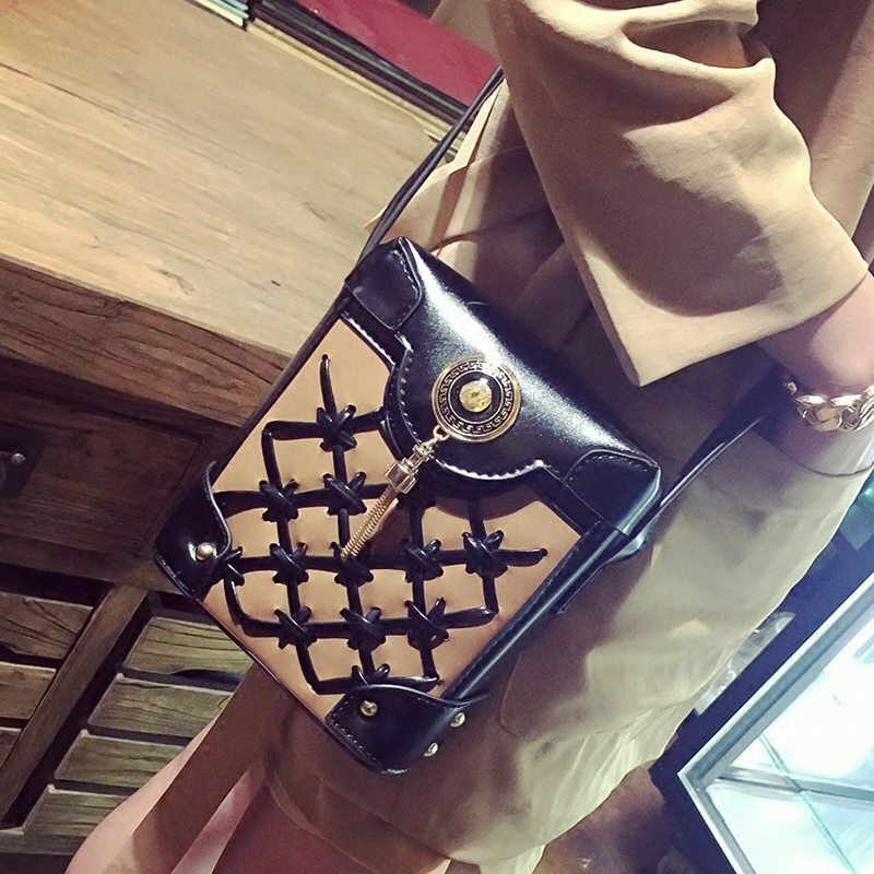 / 包包女新款潮撞色編織小箱子包流蘇單肩女包韓版斜挎包小方包