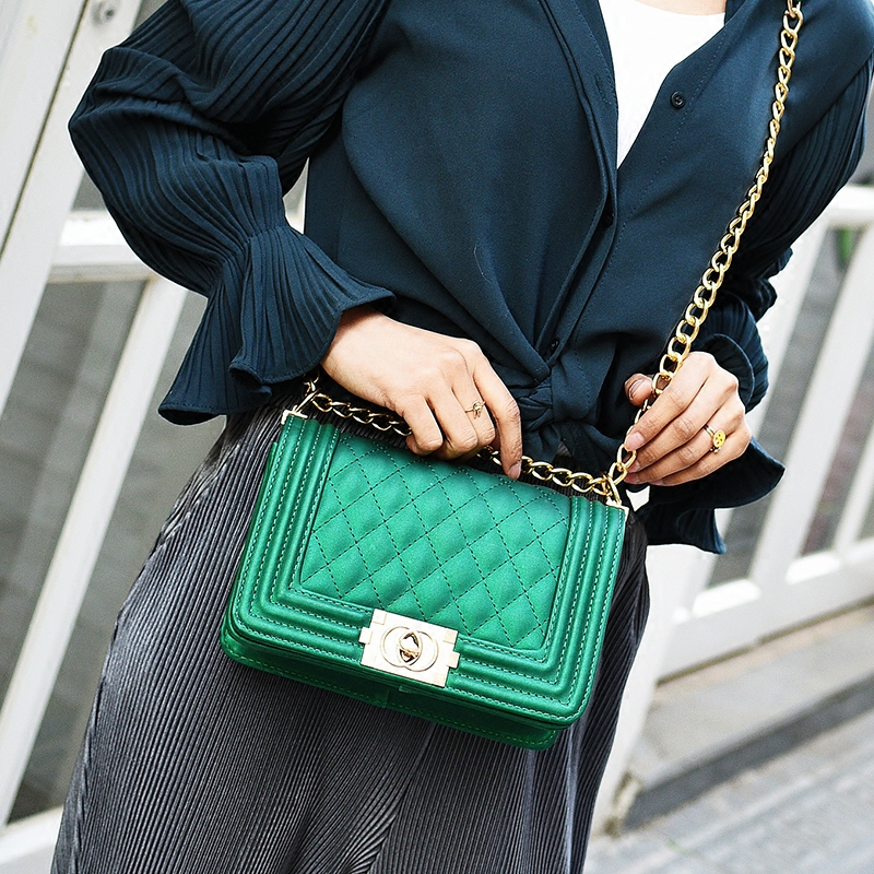 包包女新款潮果凍鏈條包韓版菱格小方包百搭單肩斜挎女包小包
