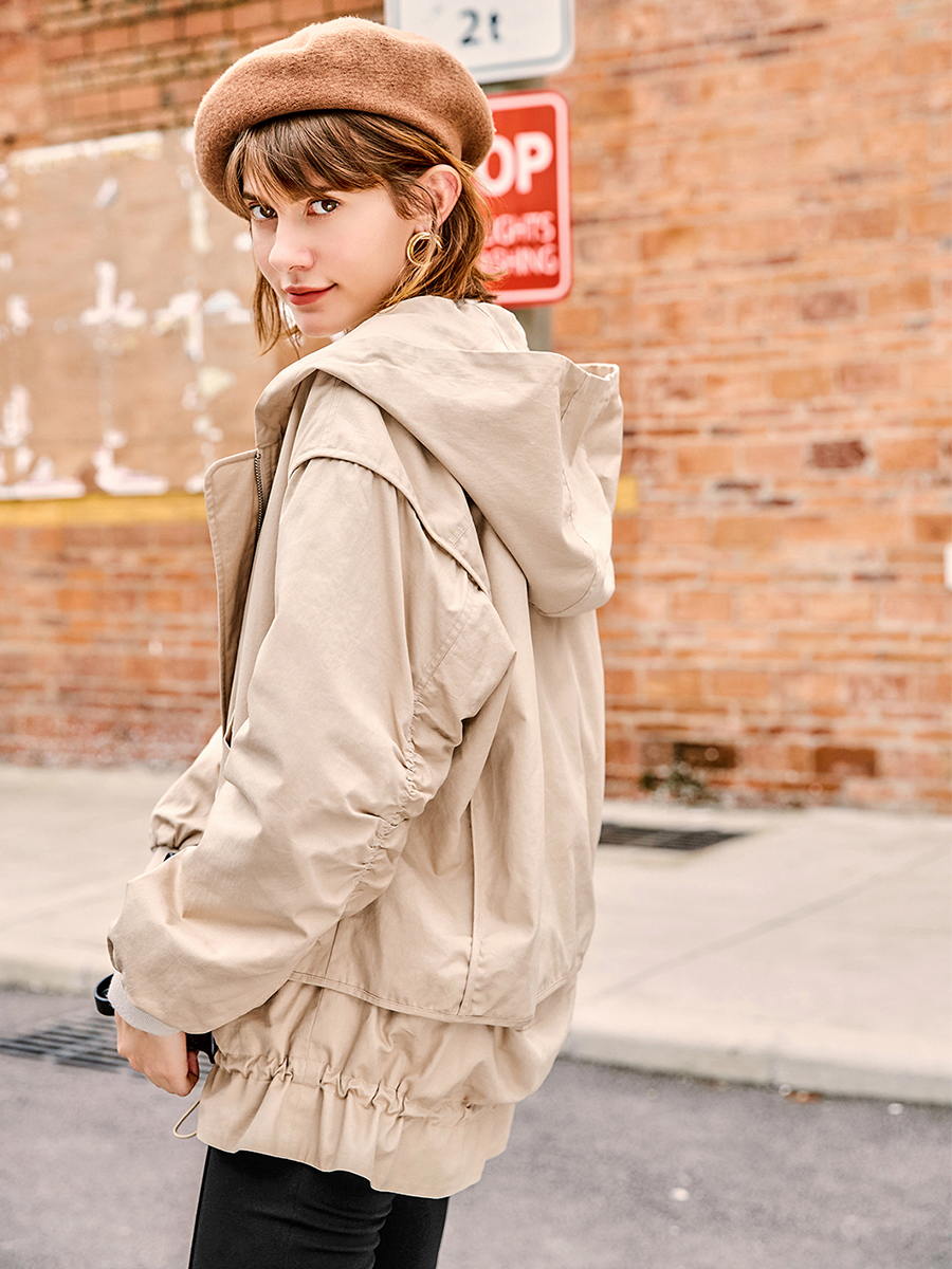 MG小象輕薄棉衣女秋冬裝2018新款韓版時尚寬松bf學生連帽寬松外套