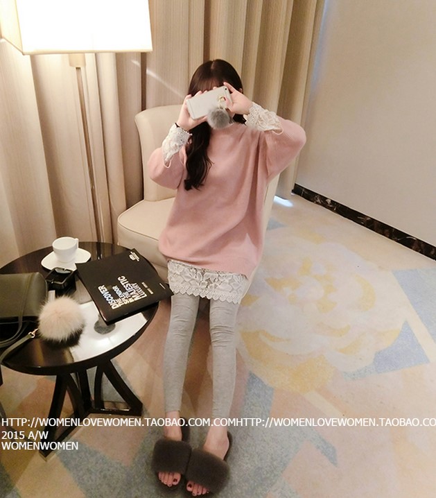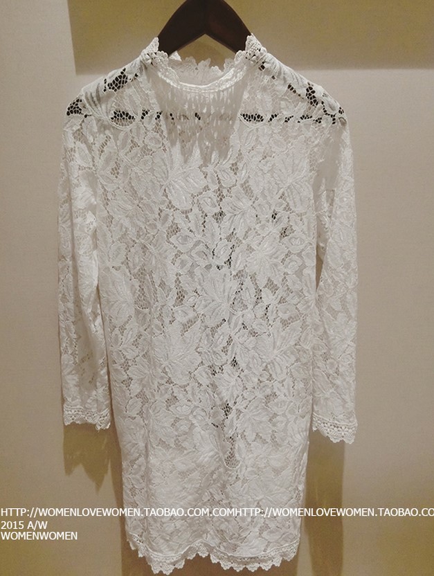 / 2017春季新品女裝裙子修身顯瘦打底衫韓版中長款長袖蕾絲縷空上衣