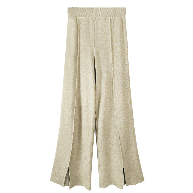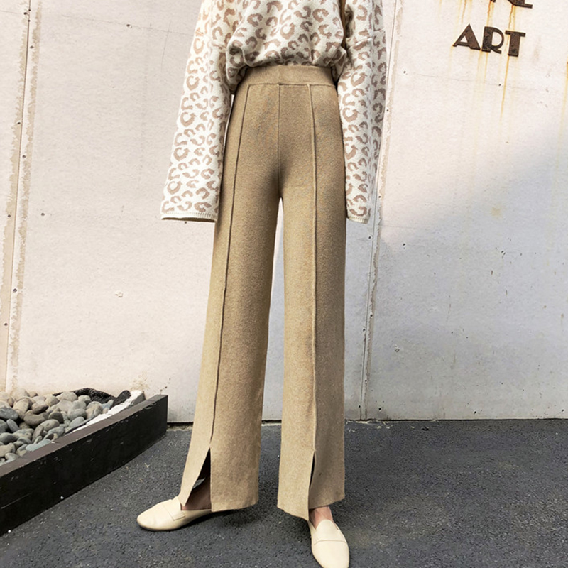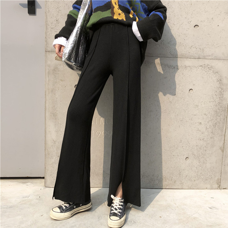 / 2018秋冬女裝新款韓版開叉針織闊腿褲寬松顯瘦高腰休閑黑色長褲子