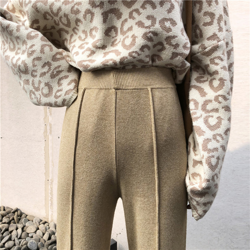 2018秋冬女裝新款韓版開叉針織闊腿褲寬松顯瘦高腰休閑黑色長褲子
