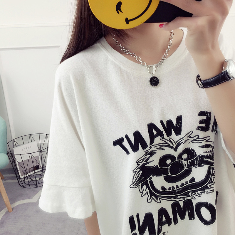 打底衫新款女冬中長款時尚短袖t恤寬松韓版學生百搭半袖上衣