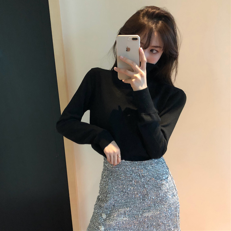網紅毛衣女秋冬2018新款韓版chic長袖修身套頭上衣高領打底針織衫