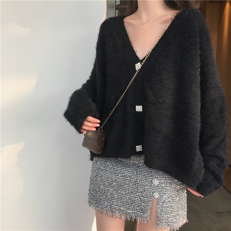 / 女神套裝秋兩件套慵懶網紅毛衣外套小清新開衫+銀絲高腰半身裙潮