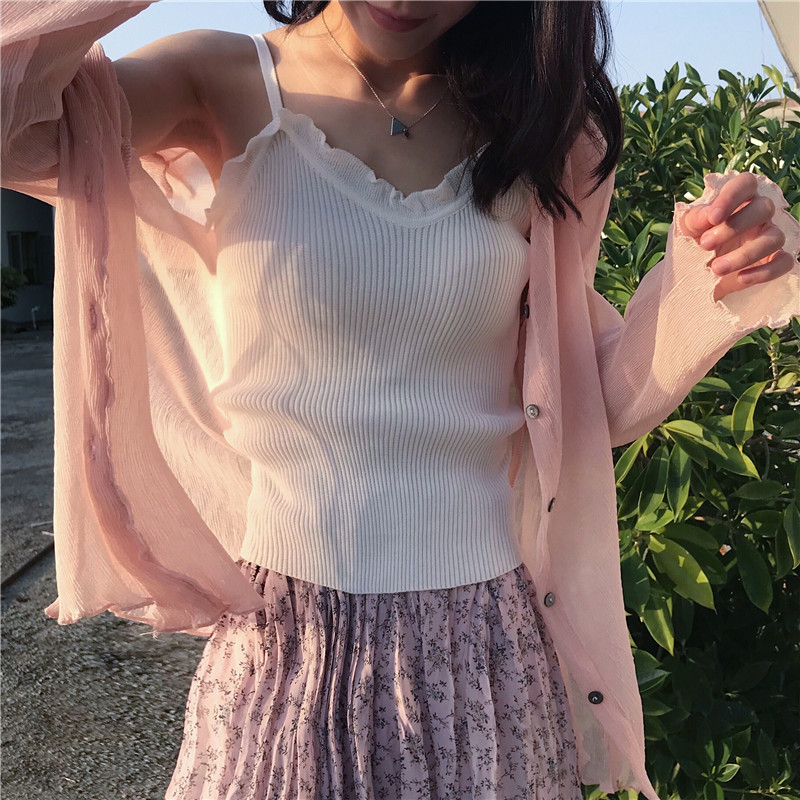 春夏韓版時尚修身小性感花邊針織衫吊帶外穿打底衫小背心上衣女士