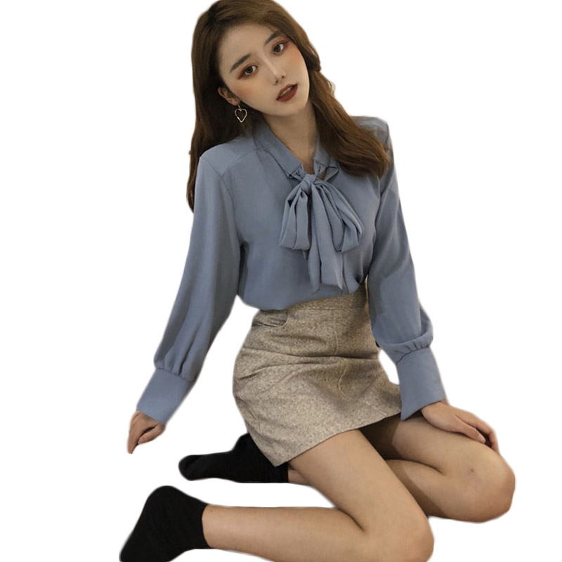 秋裝2018新款女裝韓國氣質寬松顯瘦系帶蝴蝶結襯衫女純色百搭襯衣