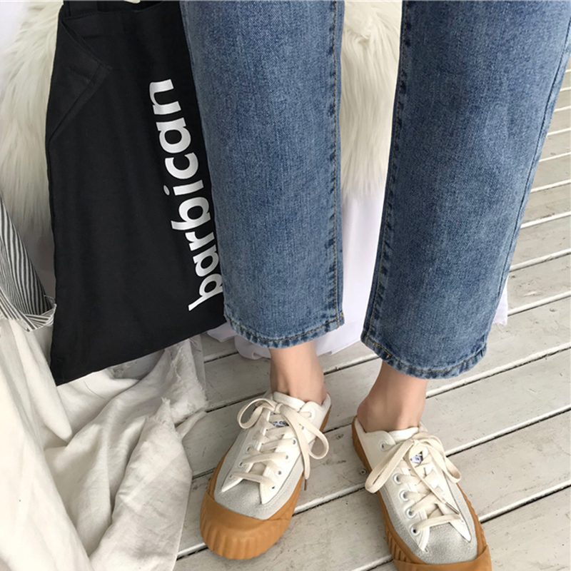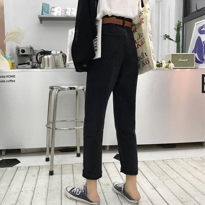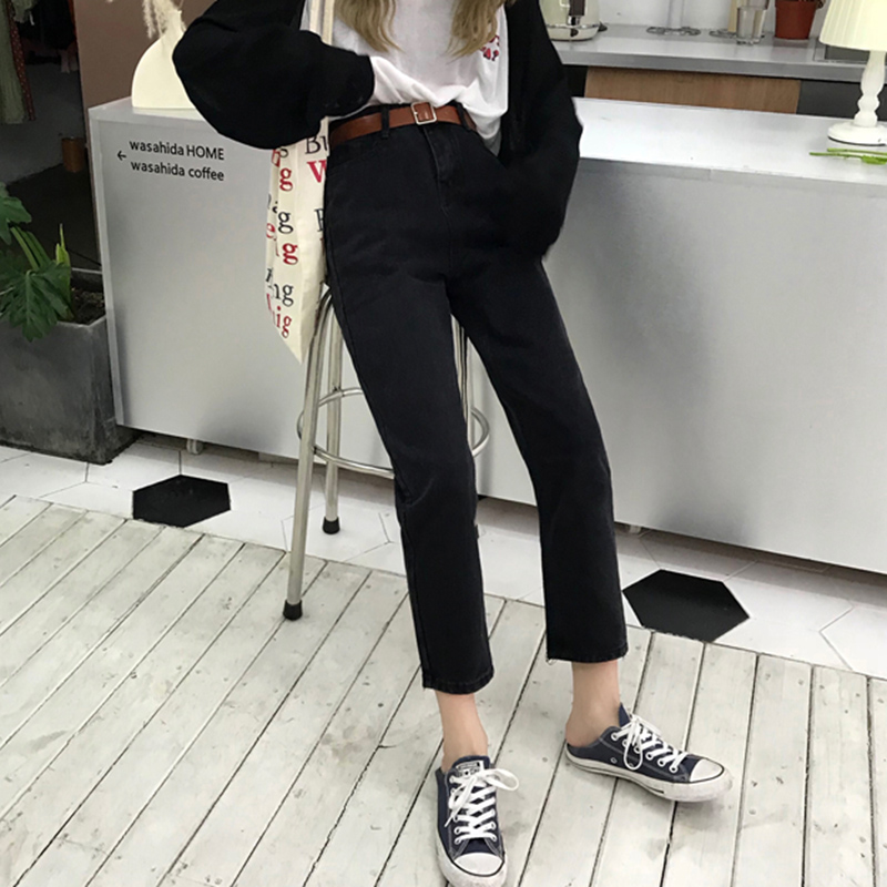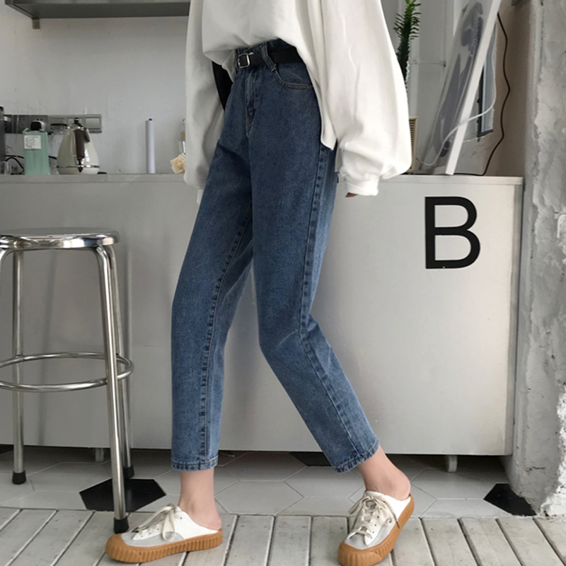 褲子女秋裝新款韓版水洗做舊學生復古寬松高腰九分直筒闊腿牛仔褲