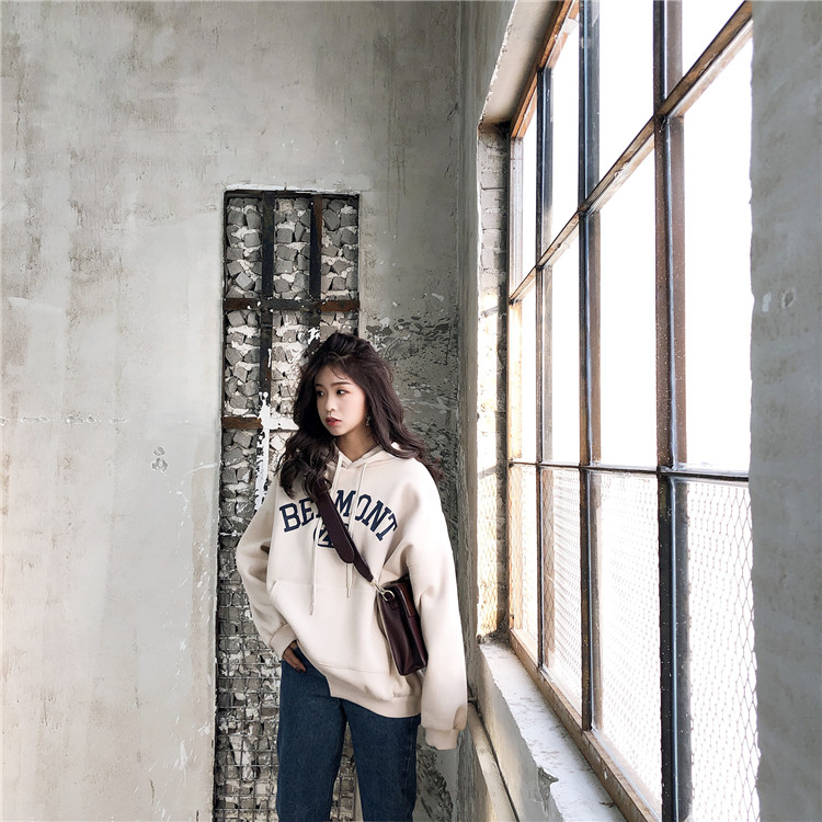 韓版網紅同款衛衣女秋2018新款懶惰風寬松加絨寬松連帽長袖上衣潮
