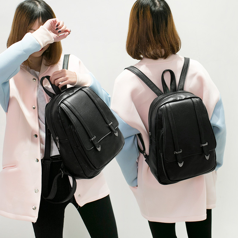 雙肩包女韓版pu時尚個性百搭小清新學院風吸扣包包新款潮背包