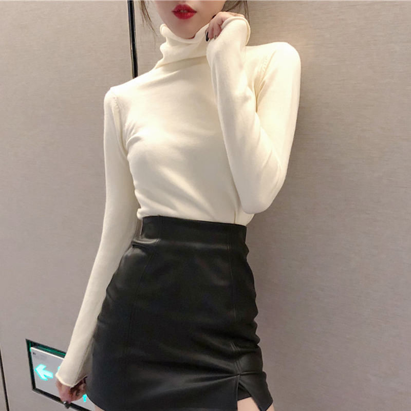 / 高領長袖針織衫女秋冬裝新款外穿套頭黑色上衣學生修身顯瘦打底衫