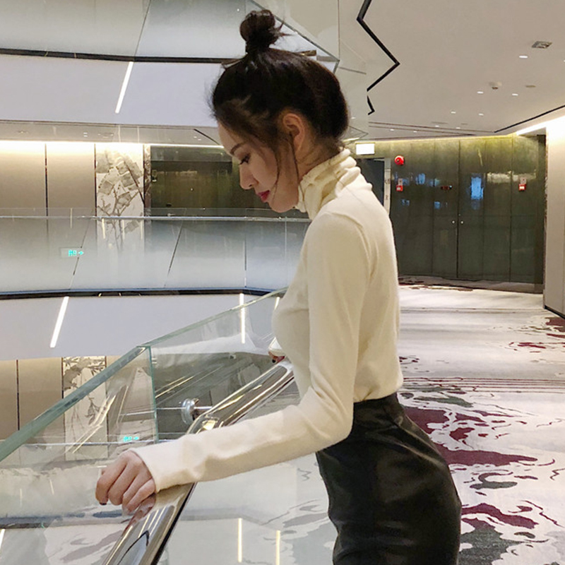 高領長袖針織衫女秋冬裝新款外穿套頭黑色上衣學生修身顯瘦打底衫