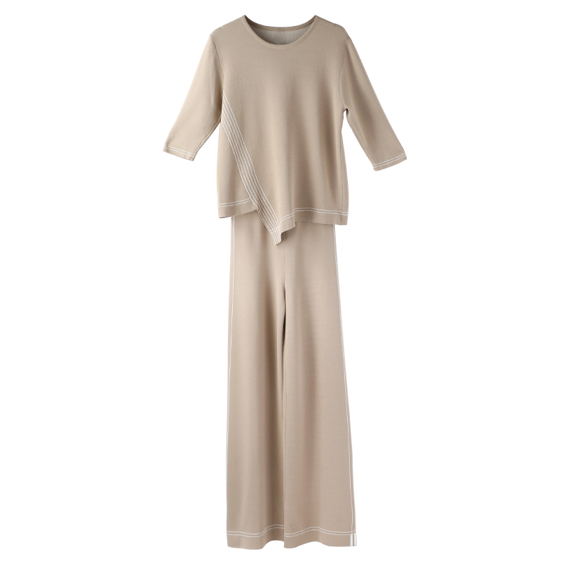 / S秀2018夏季新款女時尚氣質兩件套圓領個性上衣闊腿褲針織套裝
