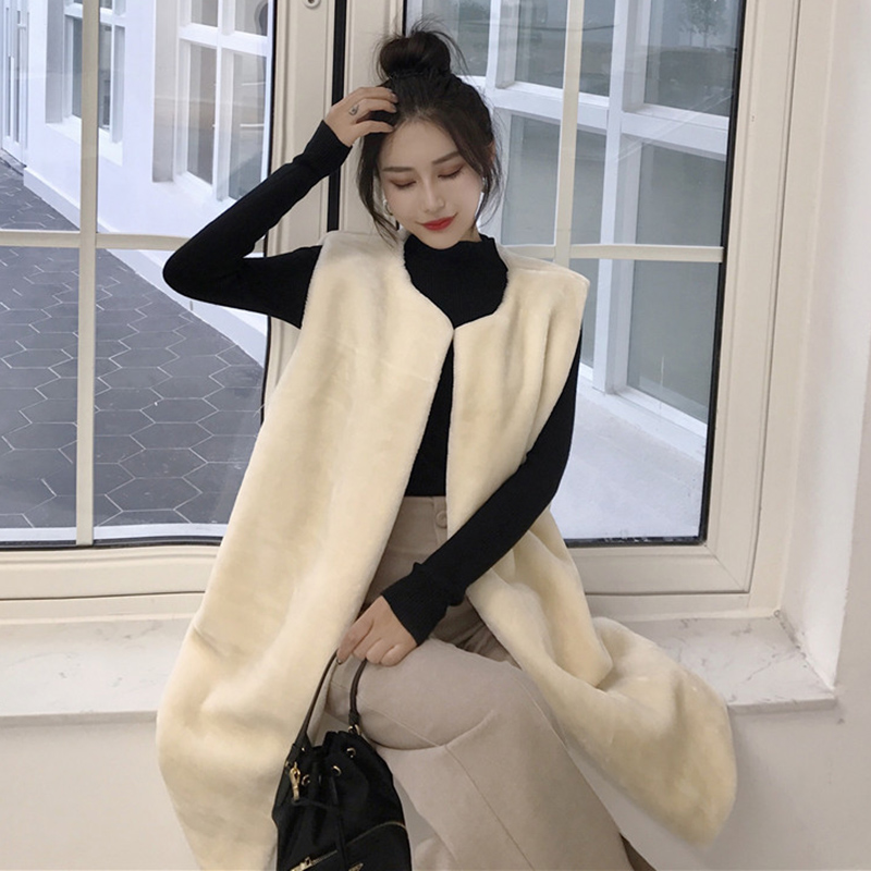 洋氣套裝女秋冬2018新款中長款毛絨馬甲針織打底上衣高腰闊腿褲子