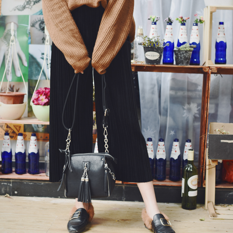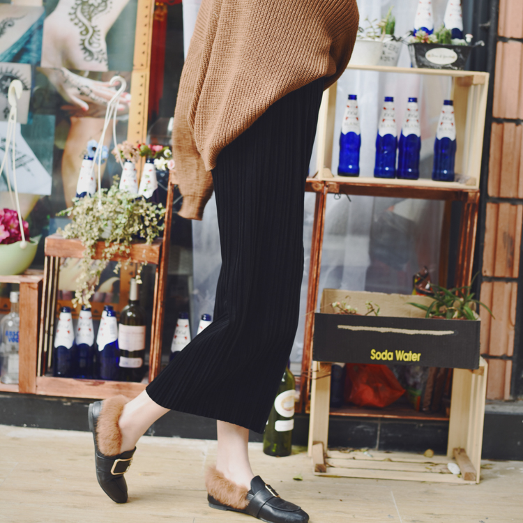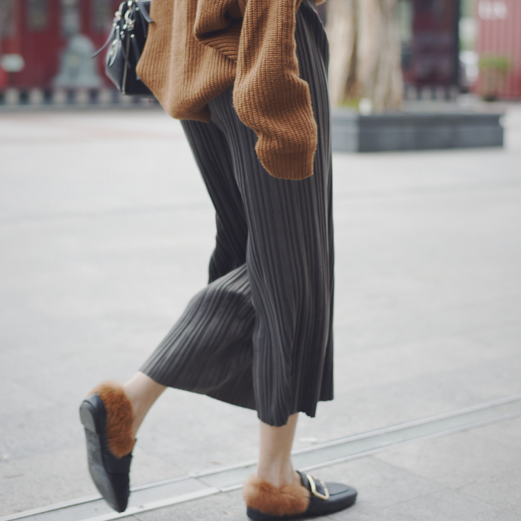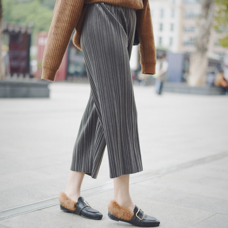 春夏寬松顯瘦百褶韓國絲絨褲松緊腰休閑直筒褲女闊腿九分褲
