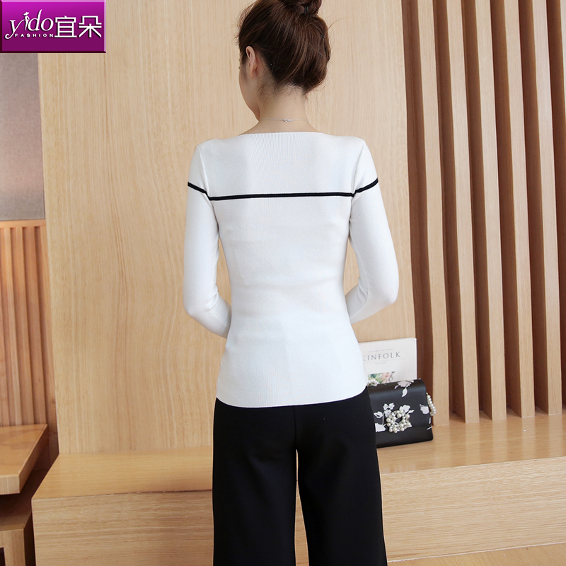/ 宜朵一字領針織打底衫女長袖修身毛衣女 春季新款套頭針織衫