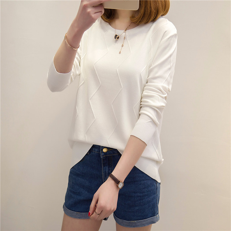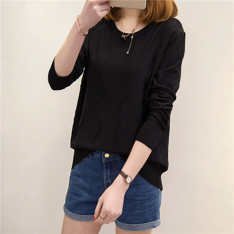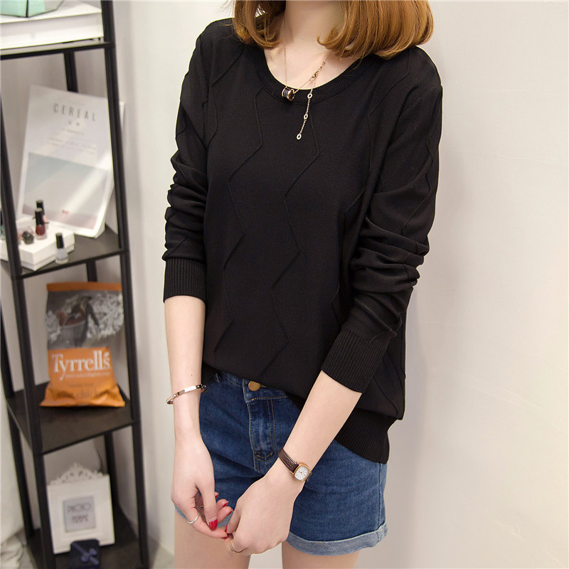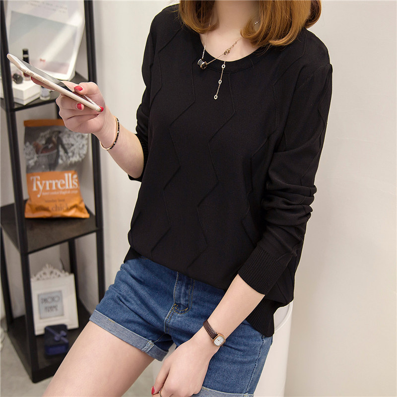 / 女裝春裝新款潮針織衫女長袖上衣寬松套頭韓版學生純色打底衫
