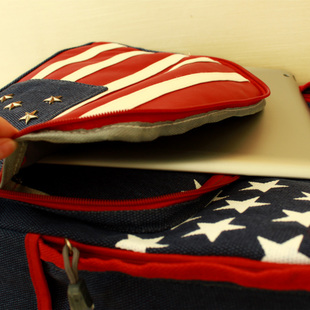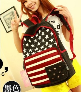 / 美國國旗學生書包帆布皮雙肩包女 好看背包女韓版潮流學院風