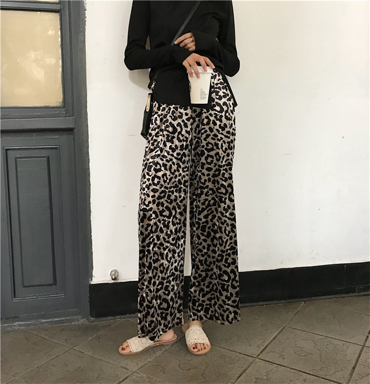 / 2018新款韓版顯瘦閃閃開叉長袖T恤絨面豹紋休閑長褲港風時尚套裝