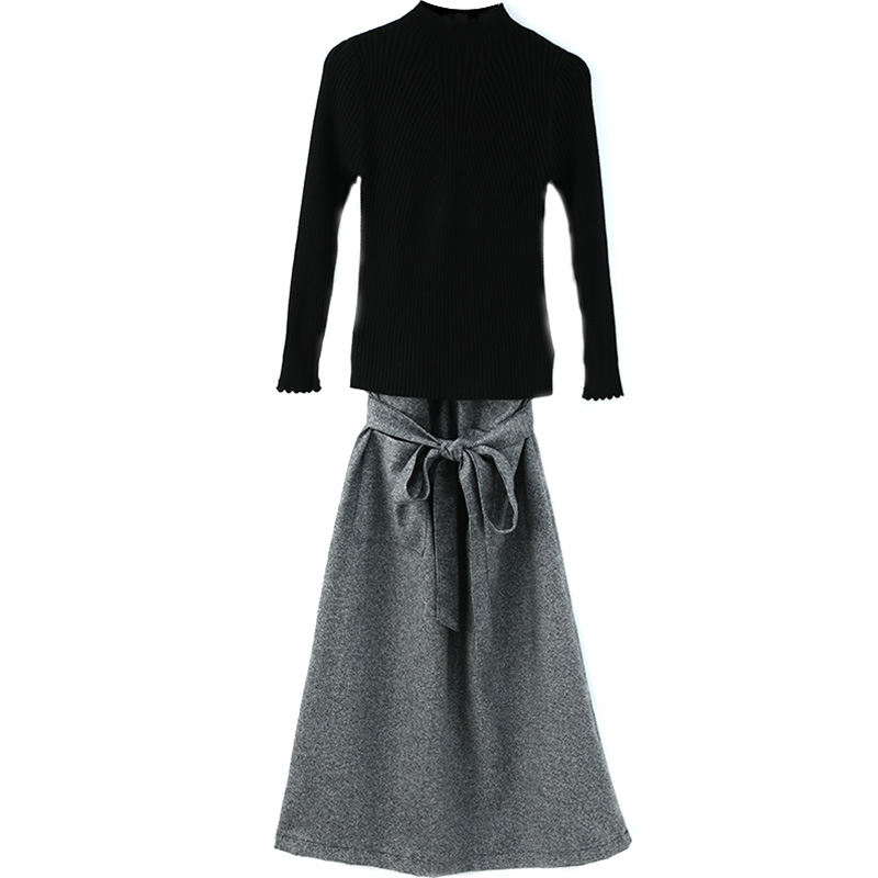 名媛毛衣兩件套女針織衫上衣2018秋季新款韓版高腰半身裙時尚套裝