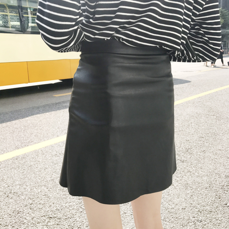 / 春季女裝新款韓版時尚pu皮裙拉鏈高腰A字短裙學生高腰包臀半身裙