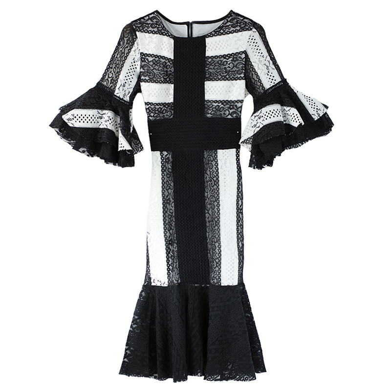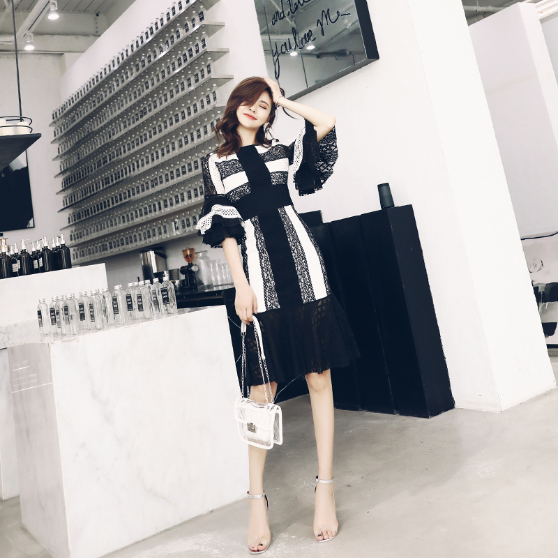 / S秀夏裝2018新款小個子中長款連衣裙女裝氣質蕾絲裙直筒大碼裙子