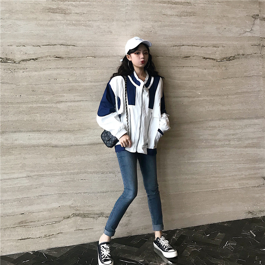 / 網紅同款秋裝女2018新款小香風拼色寬松百搭短款夾克棒球開衫外套