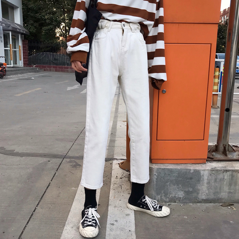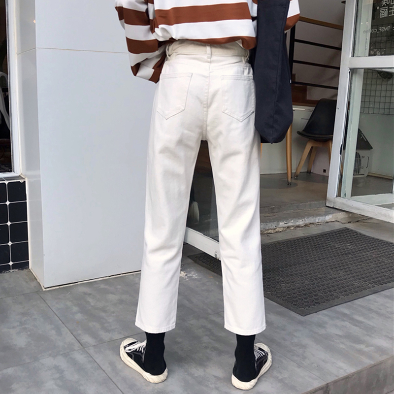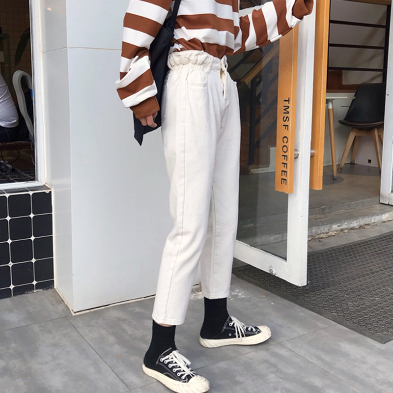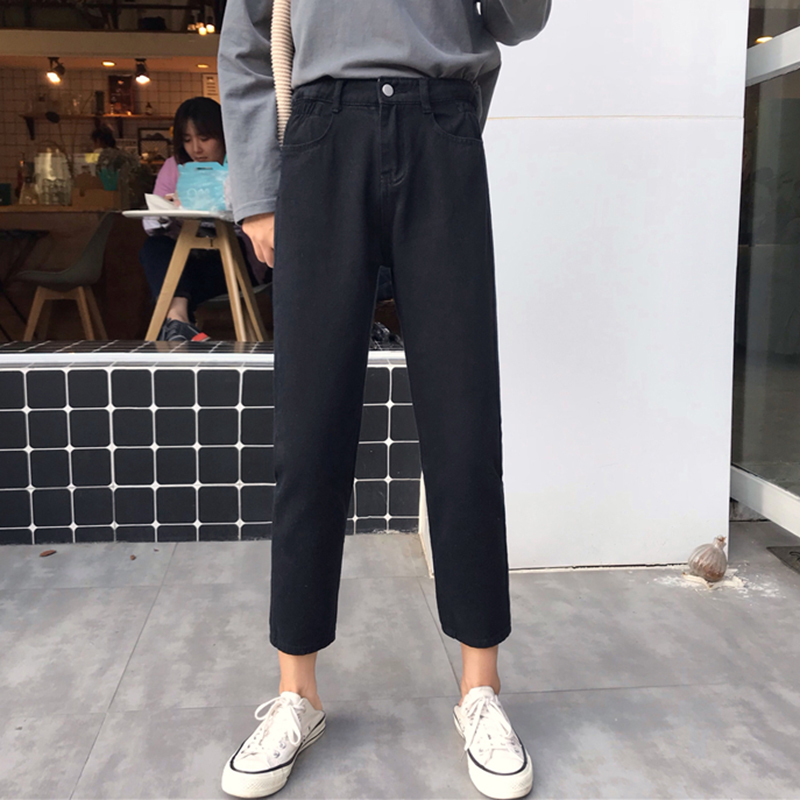 / 高腰顯瘦黑色休閑牛仔九分褲女秋冬裝新款寬松直筒復古風老爹褲子