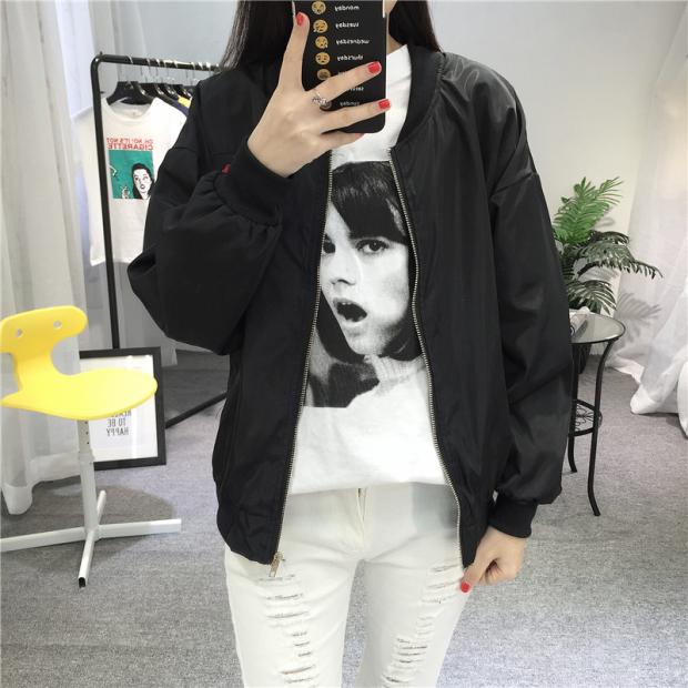 原宿bf風情侶刺繡棒球服外套女春秋韓版學生寬松中長款百搭潮薄款