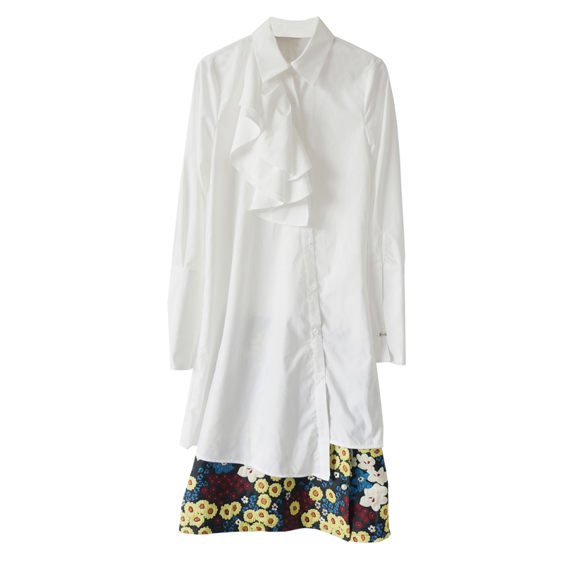 / 名媛氣質2018秋季新款韓版修身長袖襯衫連衣裙花色半身裙兩件套裝