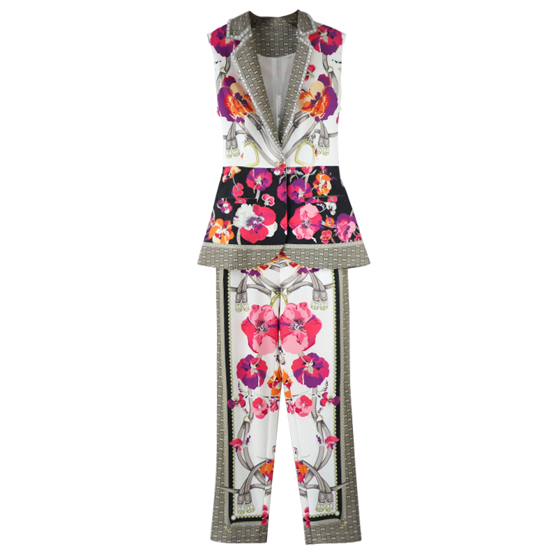 / 歐洲站洋氣歐貨女夏2018新款時尚氣質馬甲上衣小腳褲兩件套裝潮