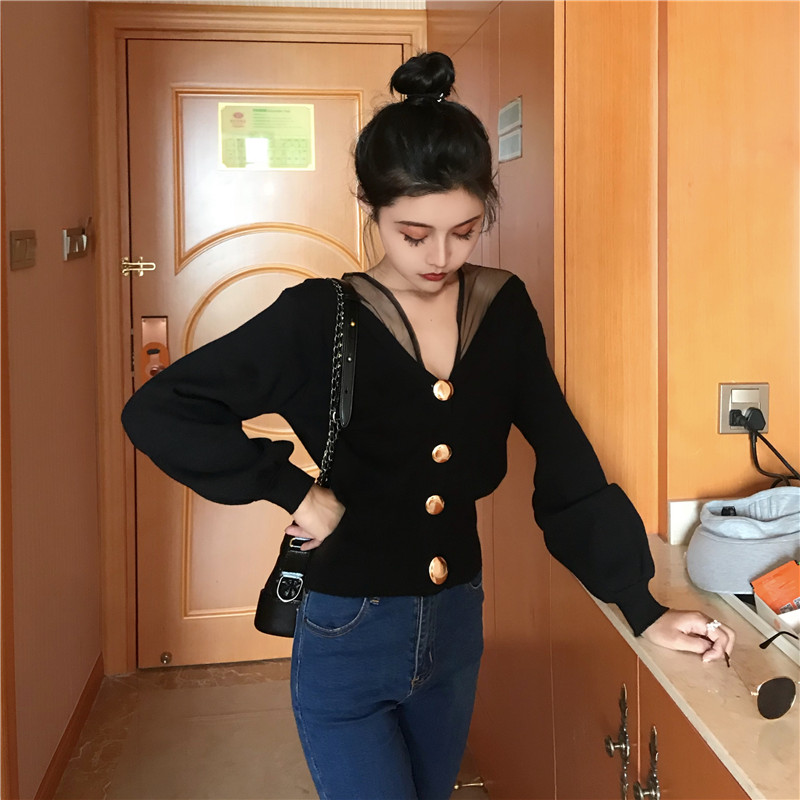 / chic早秋上衣新款氣質針織韓版小心機百搭毛衣女時尚休閑長袖開衫