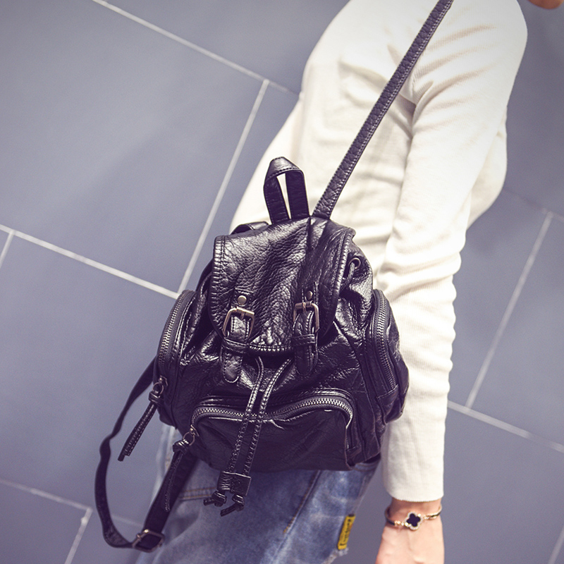 新款韓版水洗皮雙肩包女士學院風PU迷你小背包休閑旅行包包潮