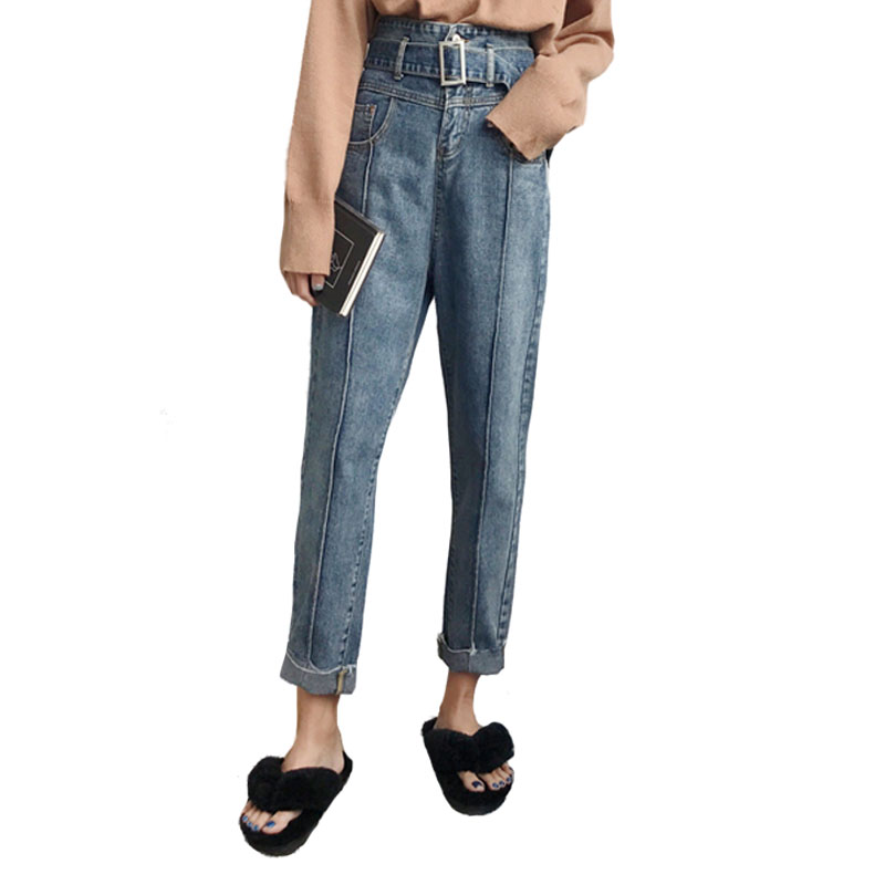/ 秋裝女裝新款韓版復古高腰顯瘦寬松毛邊哈倫褲牛仔褲九分褲長褲潮
