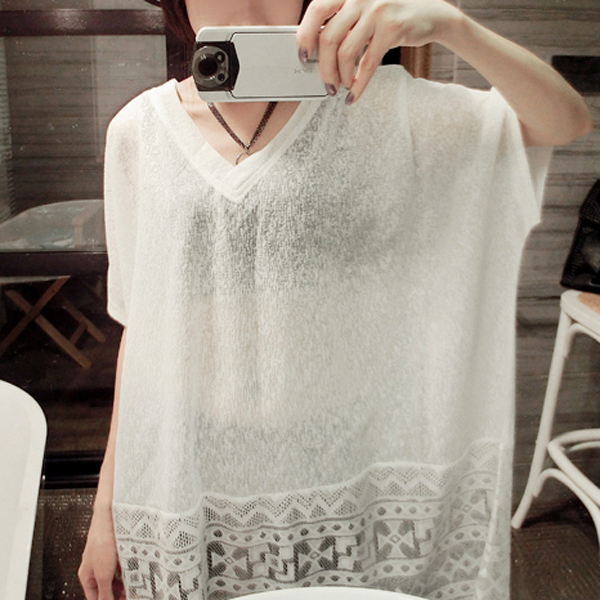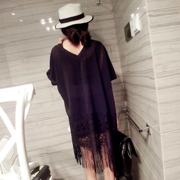 / 流蘇鏤空罩衫中長款打底衫透視裝性感上衣女夏季2017新款寬松