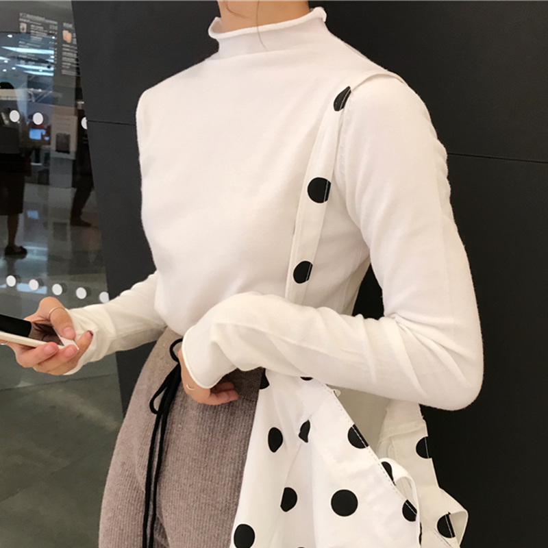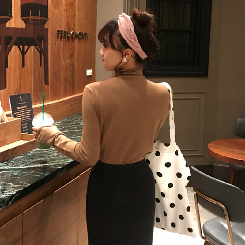 / 韓版小高領T恤修身顯瘦針織打底衫女秋冬裝新款時尚白色長袖上衣