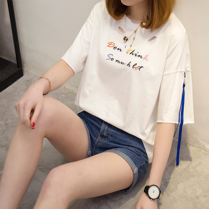 夏裝新款女裝白色t恤女半袖寬松上衣女夏韓版打底體恤衫百搭