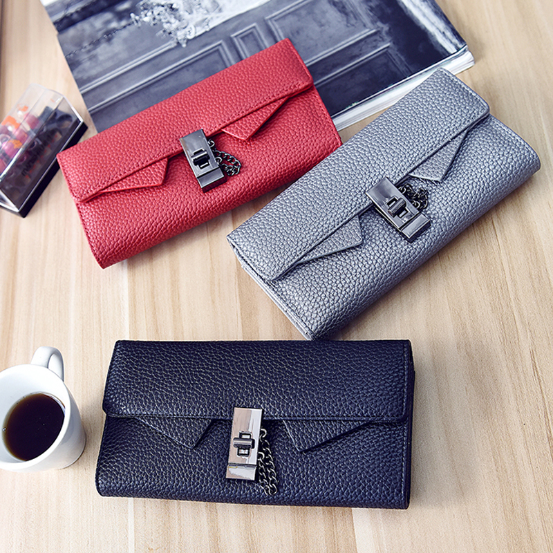 / 新款女士長款錢包 歐美版女款皮夾拉鏈搭扣錢夾 大容量手拿包
