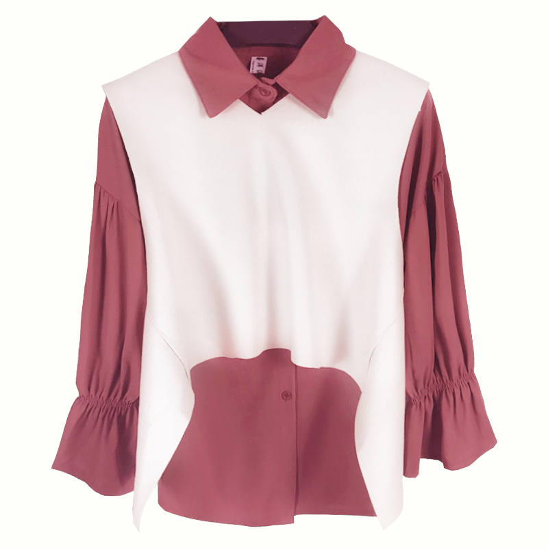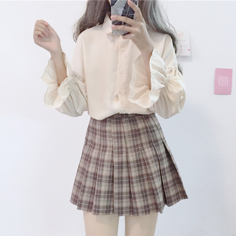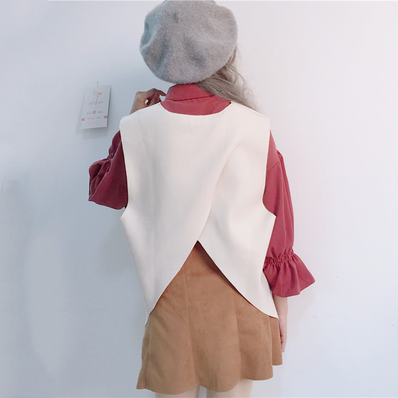 / 甜美學院風早秋兩件套女秋裝新款學生喇叭袖襯衣配馬甲開叉背心