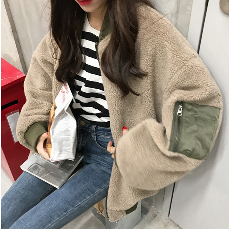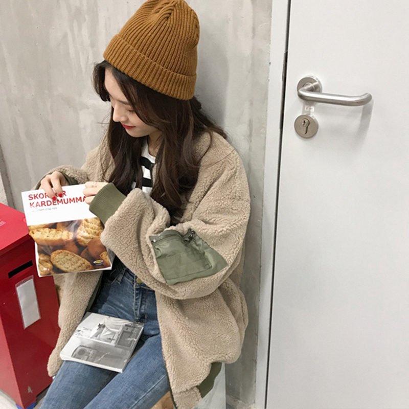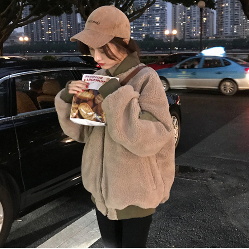 / 原宿風仿羊羔毛兩面穿夾克女秋冬裝2018新款韓版學生寬松長袖外套