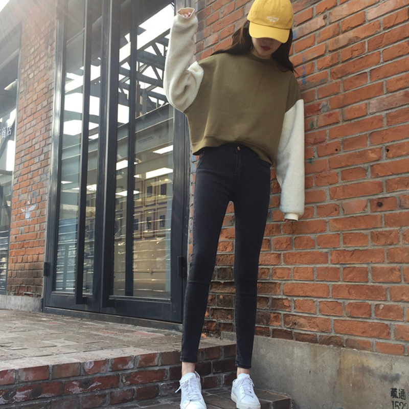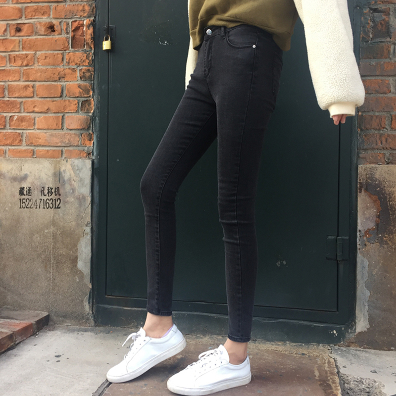 2018秋季新款外穿褲子潮修身顯瘦彈力鉛筆褲高腰九分小腳牛仔褲女