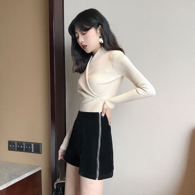 / 絲絨雙拉鏈短靴褲女秋冬裝2018新款韓版氣質高腰顯瘦休閑闊腿褲子
