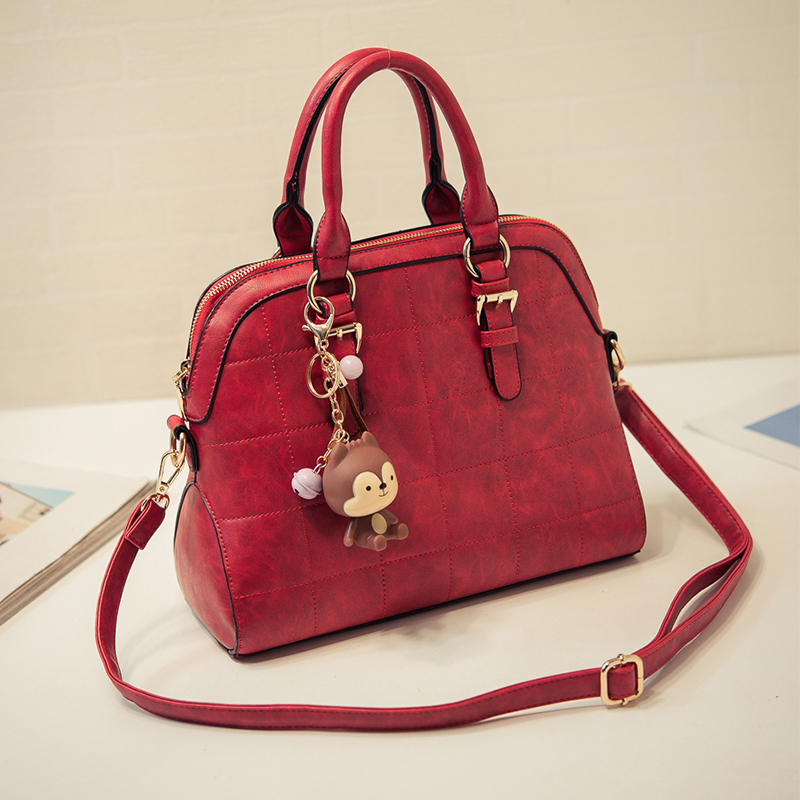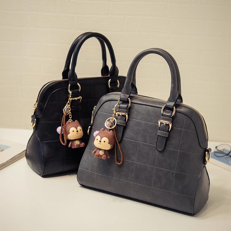 / 新款韓版繡線格子貝殼包時尚單肩女包復古手提包小包包斜挎包