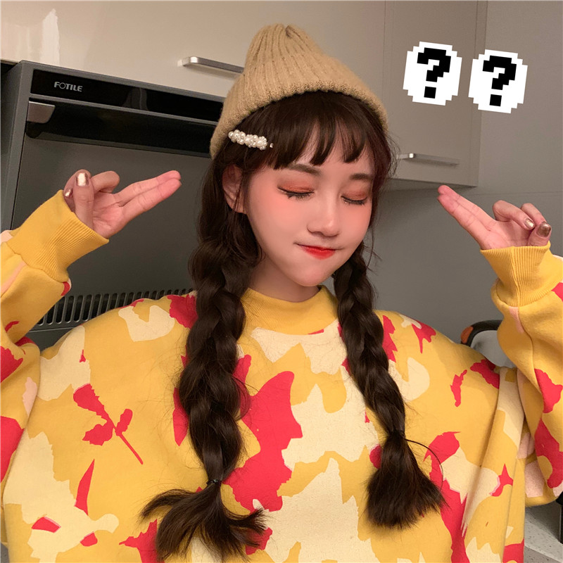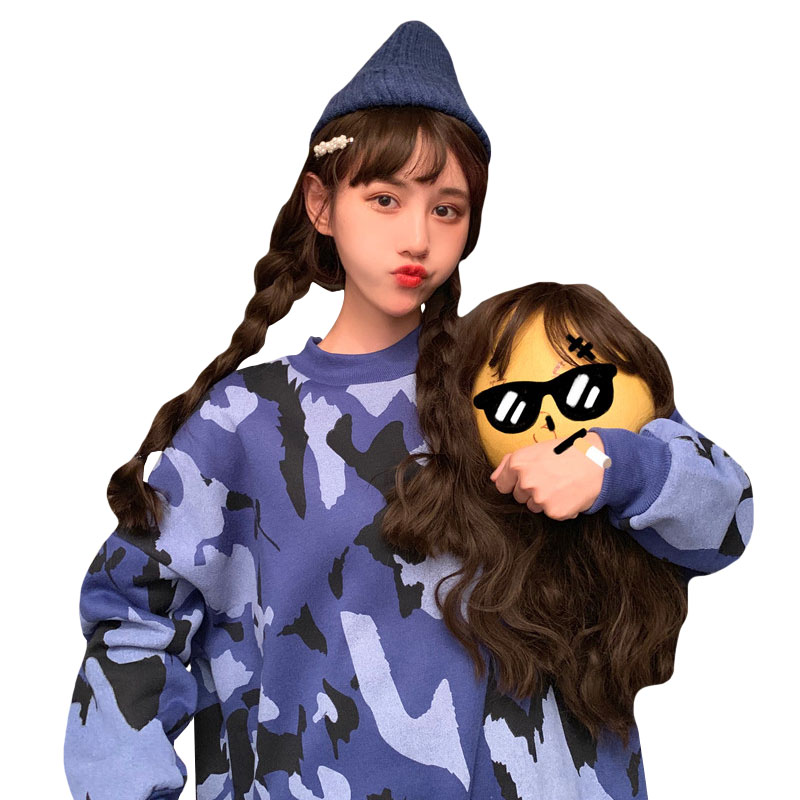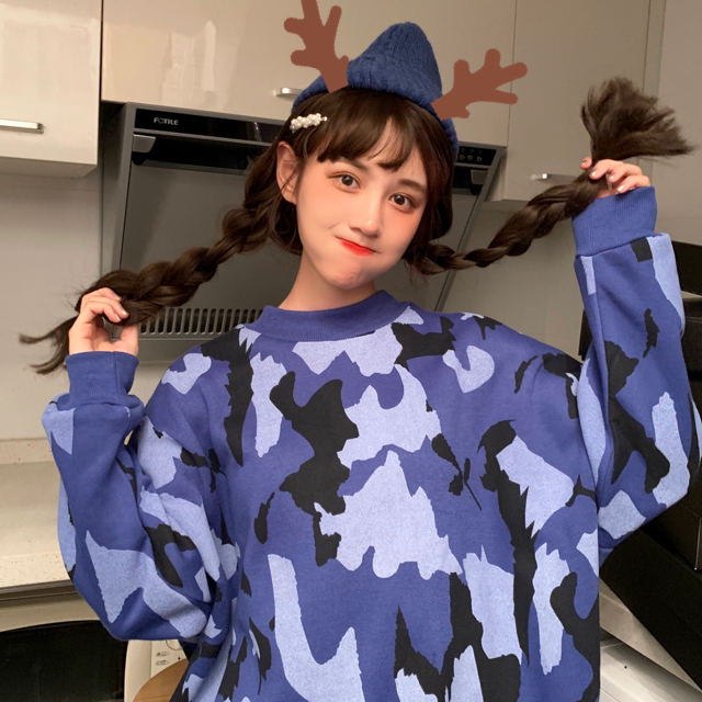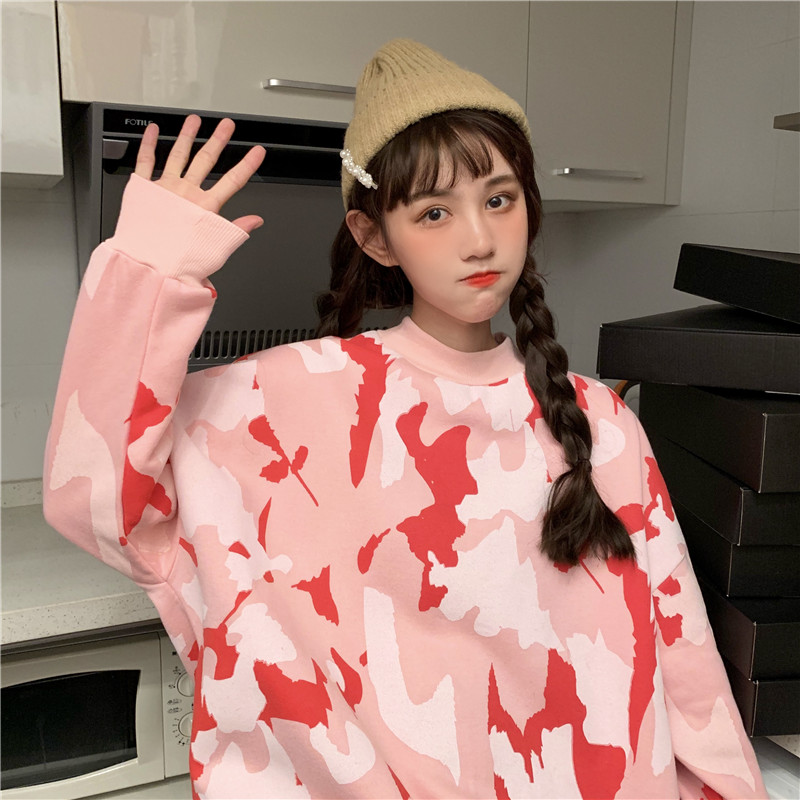 / 2018新款秋冬韓版寬松慵懶風迷彩涂鴉撞色套頭超火衛衣上衣外套女