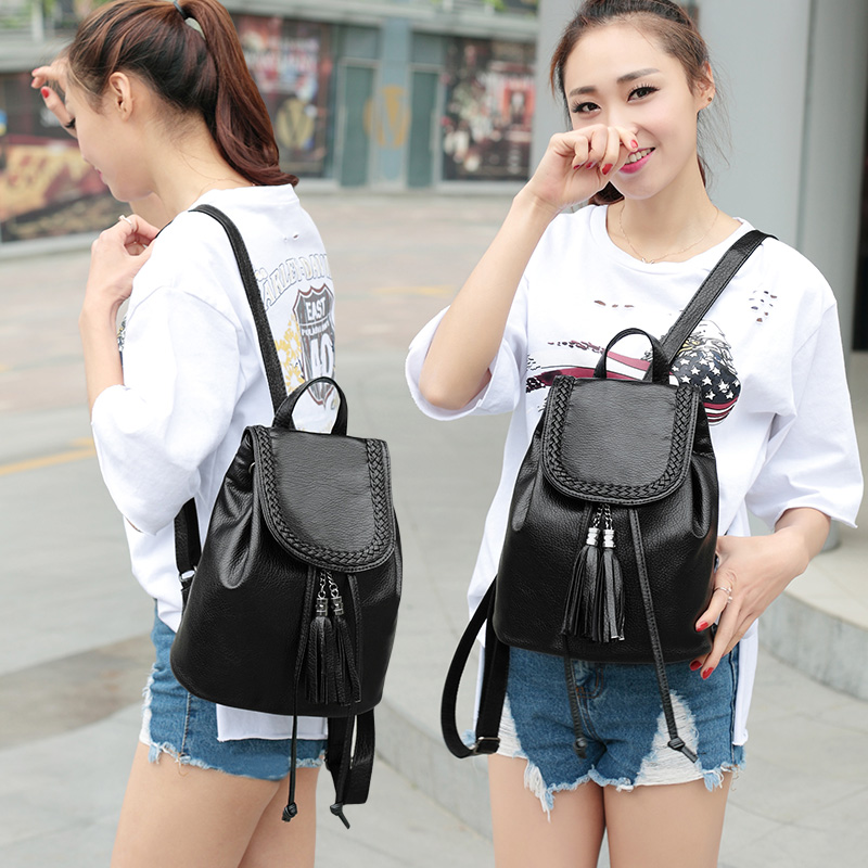 雙肩包女韓版pu時尚個性百搭休閑簡約流蘇女士包包新款潮背包