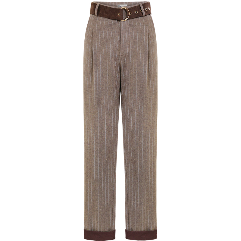 MG小象褲子女秋冬2018新款寬松顯瘦chic直筒褲復古條紋西裝褲子潮