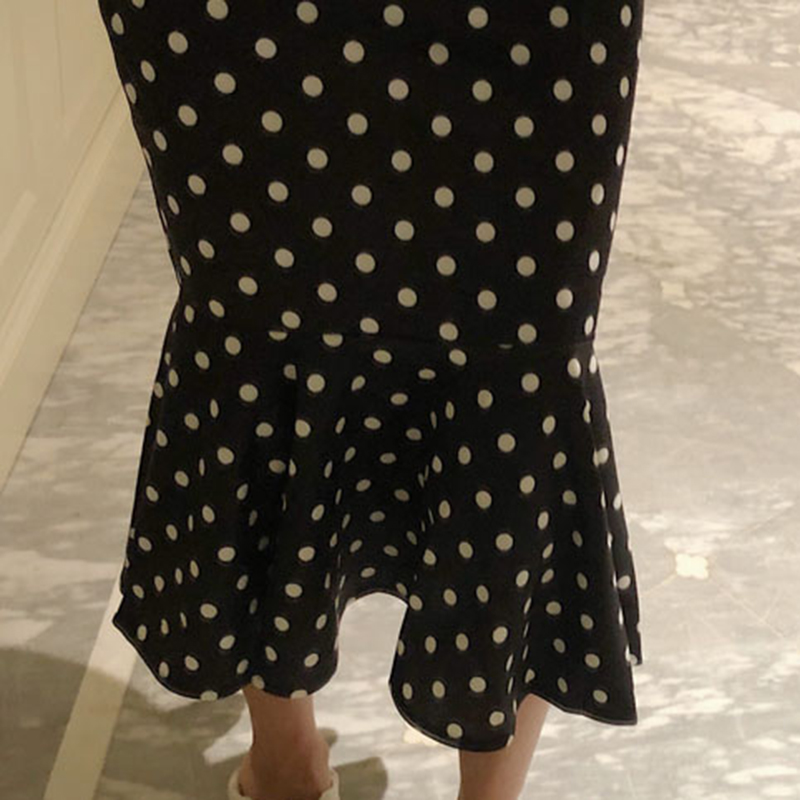 復古風波點高腰顯瘦半身裙子女秋冬裝新款韓版學生黑色魚尾中長裙