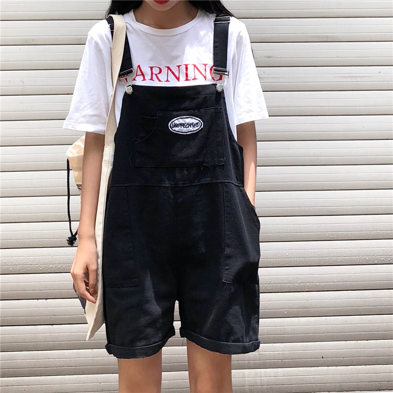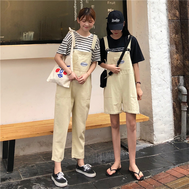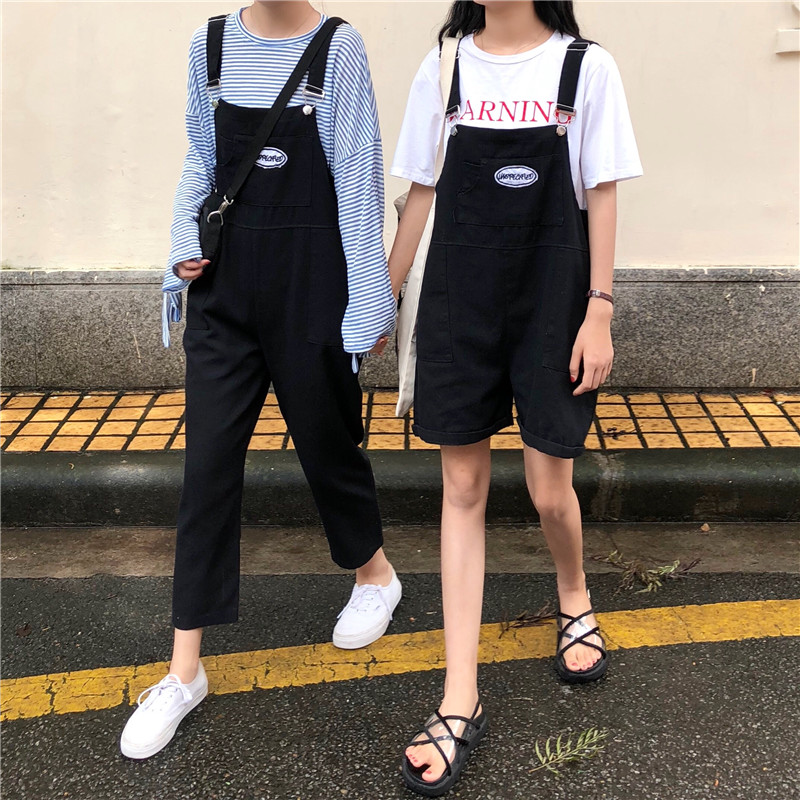 / 夏季女裝韓版寬松顯瘦工裝背帶連體褲休閑褲九分褲閨蜜闊腿褲短褲
