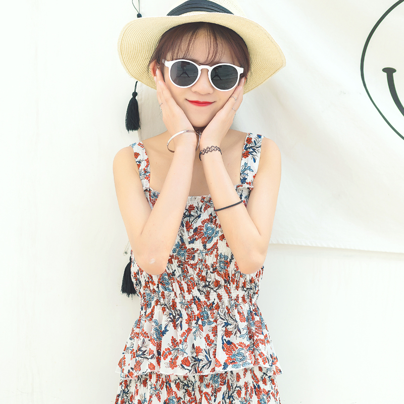 2017夏裝新款女裝韓版小清新時尚套裝吊帶闊腿短褲小碎花兩件套潮
